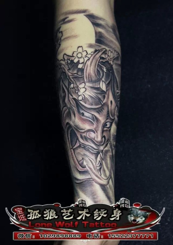 小臂般若纹身 天津宝坻孤狼纹身工作室 微信{QQ}:1029898889 电话:15522377771
