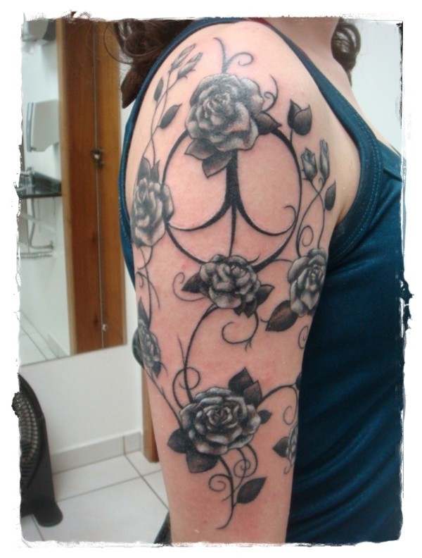 大臂传统彩绘玫瑰藤蔓纹身图案