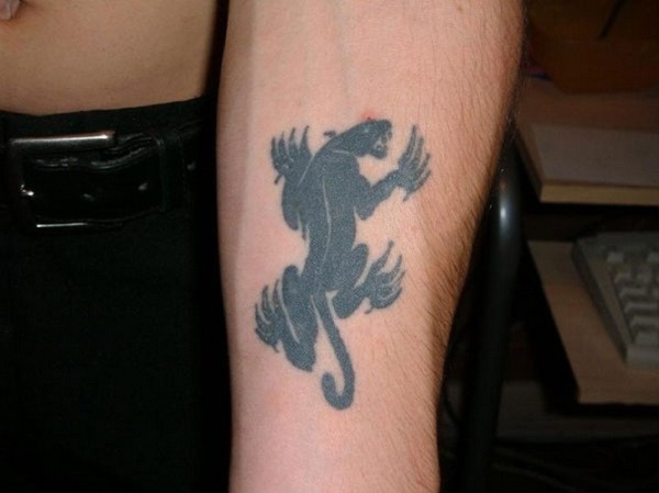 手臂小小的黑色豹子纹身图案