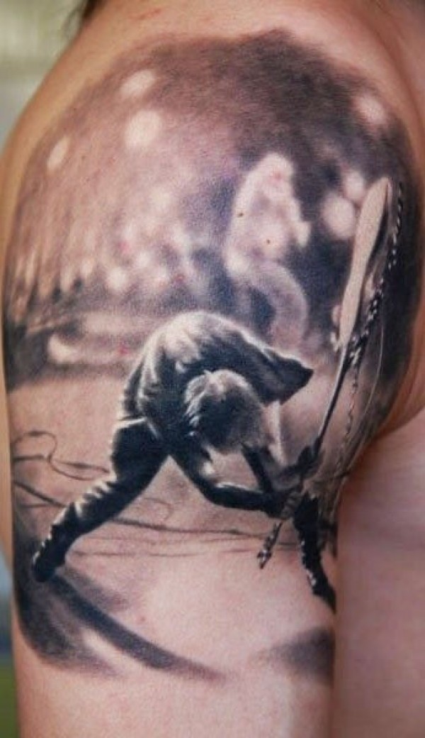 黑白音乐家人像大臂纹身图案
