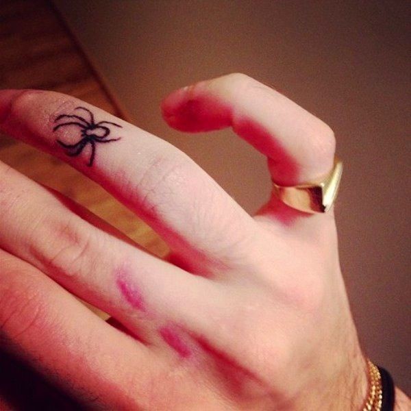 手指小小的黑色蜘蛛纹身图案