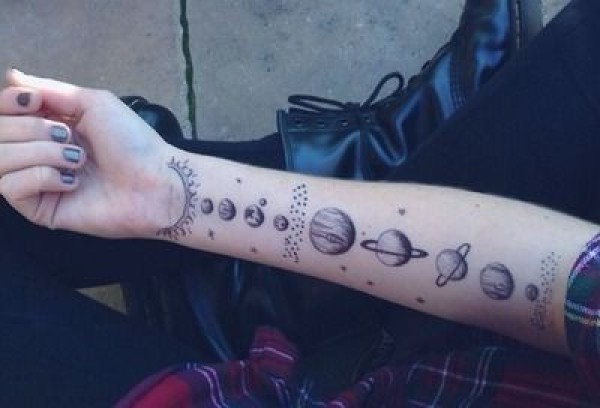 手臂好看的黑色不同星球纹身图案