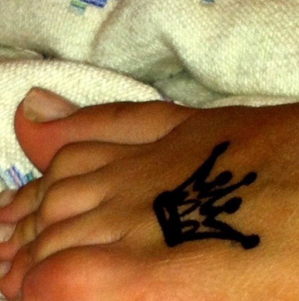 脚背黑色粗线条皇冠纹身图案