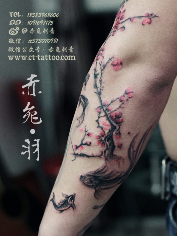 清新淡雅 北京newtattoo纹身店陈洁山水水墨纹身 (一)