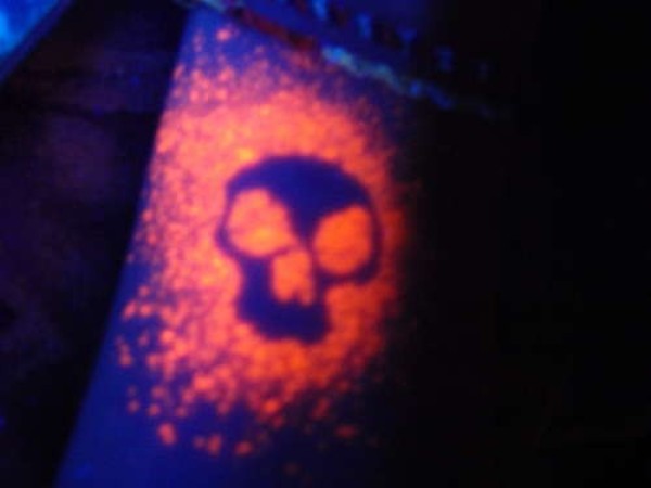 橙色荧光骷髅个性纹身图案