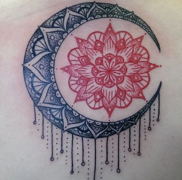 可爱的黑色和红色太阳月亮梵花纹身图案