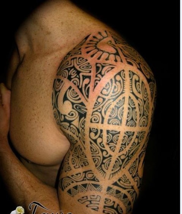 大臂很漂亮的黑色波利尼西亚图腾纹身图案