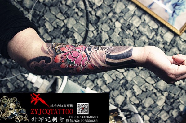 包小臂莲花纹身--福建三明沙县针印记刺青胡宇作品