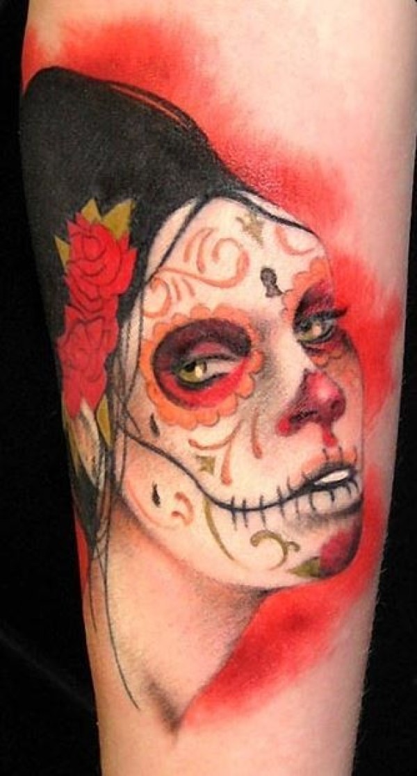 红色死亡女郎肖像纹身图案