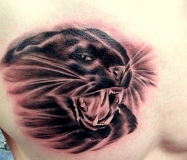 精彩的黑豹头胸部纹身图案