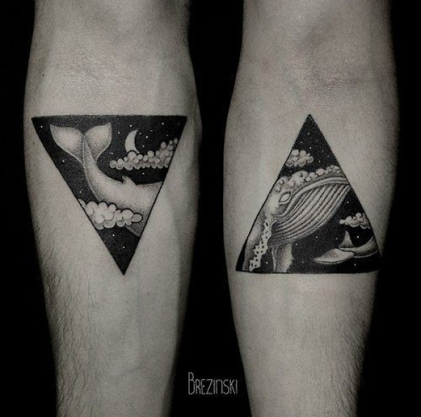 可爱的黑色鲸鱼三角型小臂纹身图案