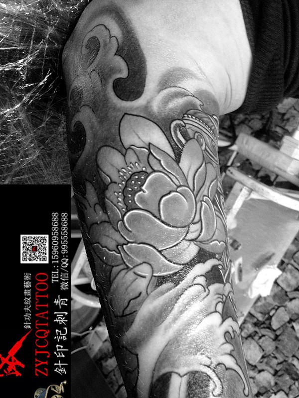 黑灰莲花纹身-小臂纹身-福建三明沙县针印记刺青作品