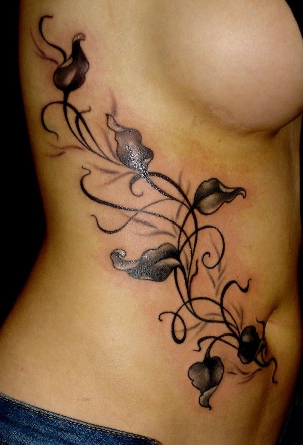 侧肋黑灰藤蔓纹身图案