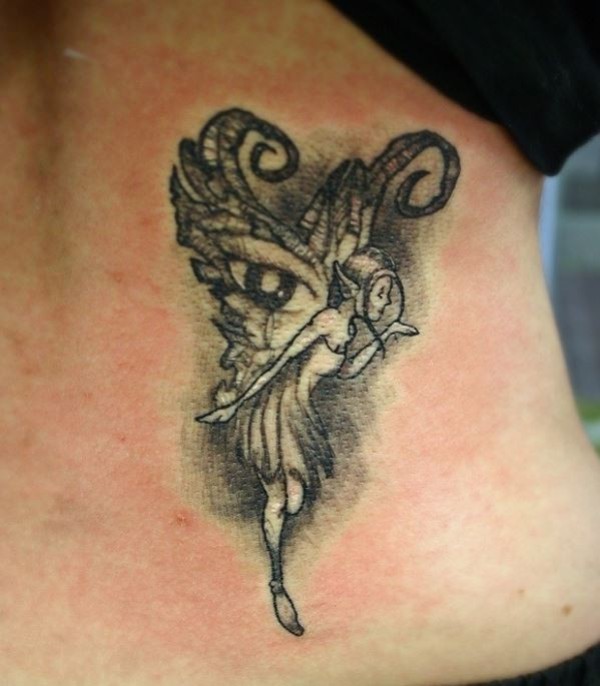 侧肋黑灰精灵眼睛纹身图案