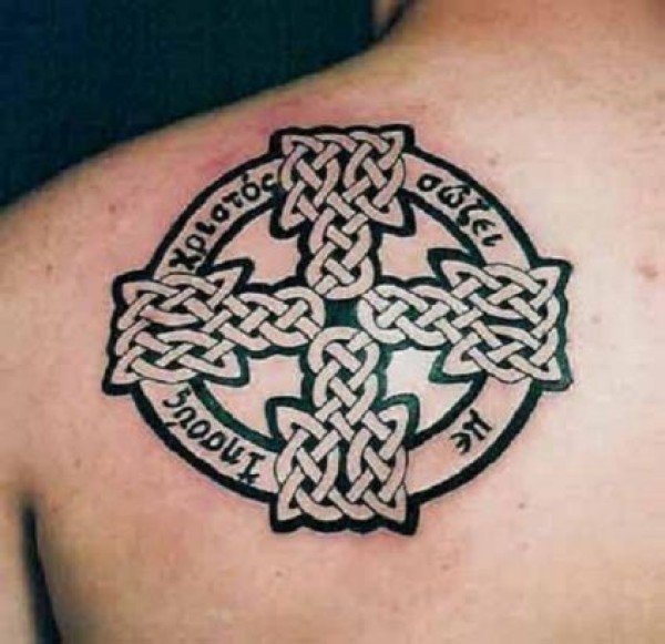 黑色爱尔兰结十字架纹身图案
