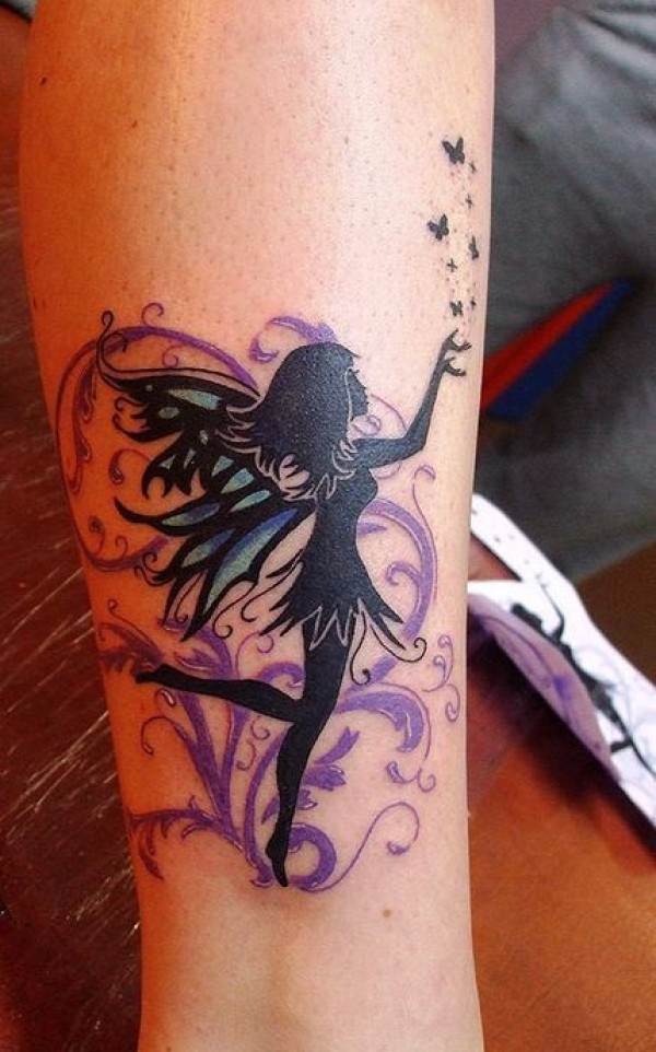 黑色精灵与紫色藤蔓纹身图案