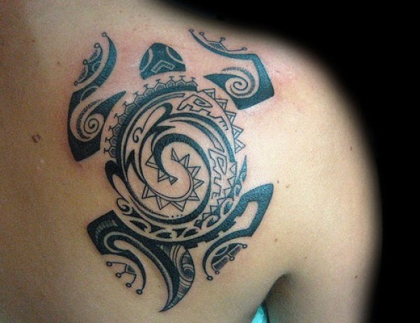漂亮的黑色波利尼西亚乌龟纹身图案