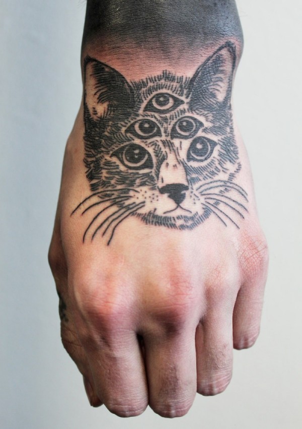 黑色的猫有五只眼睛纹身图案
