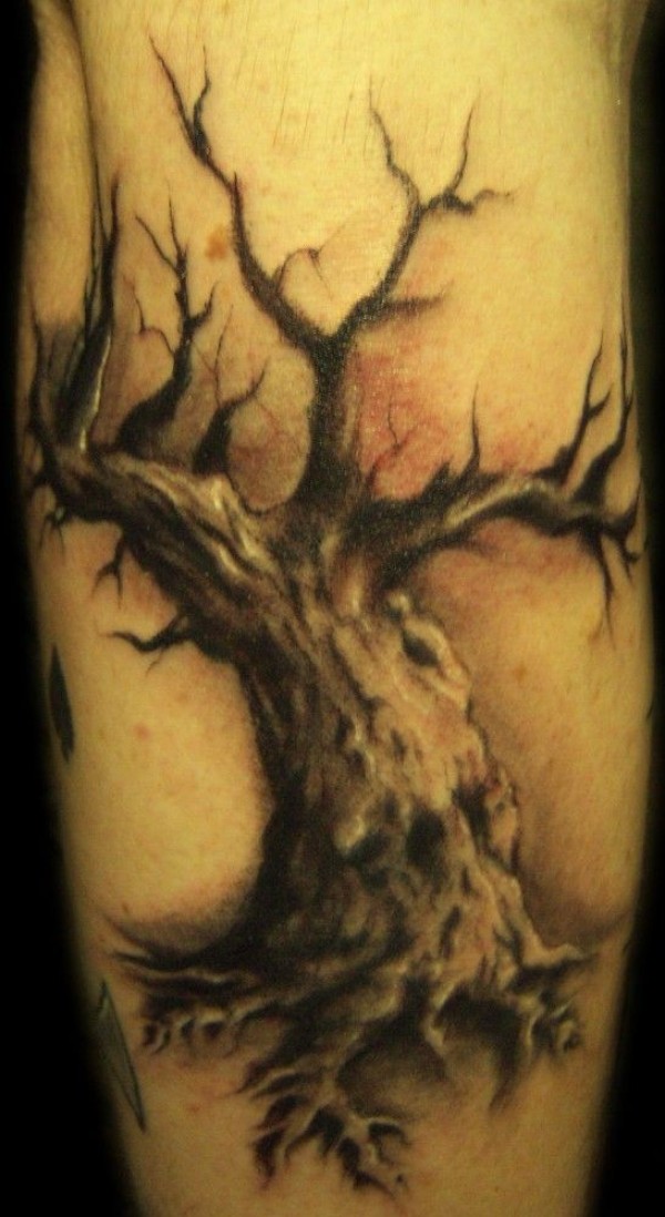 黑色写实枯树纹身图案