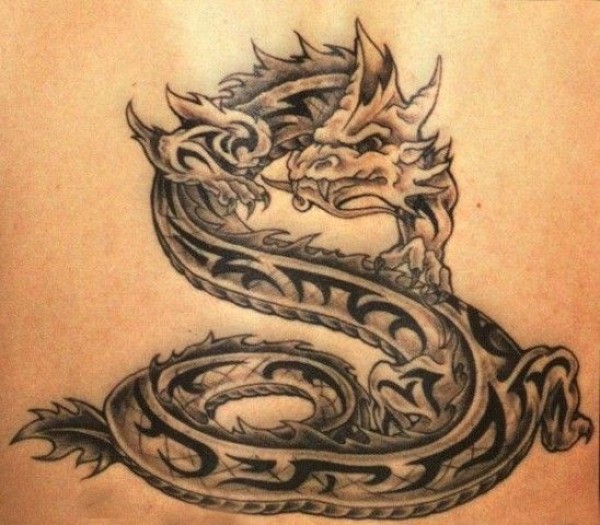 黑色和灰色的龙纹身图案