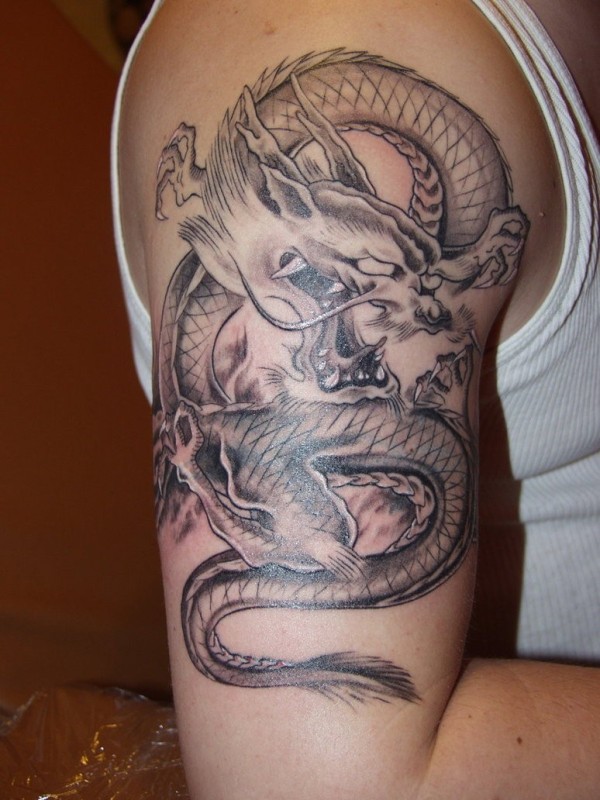 龙纹身手稿_一组老传统黑灰龙手稿纹身图案