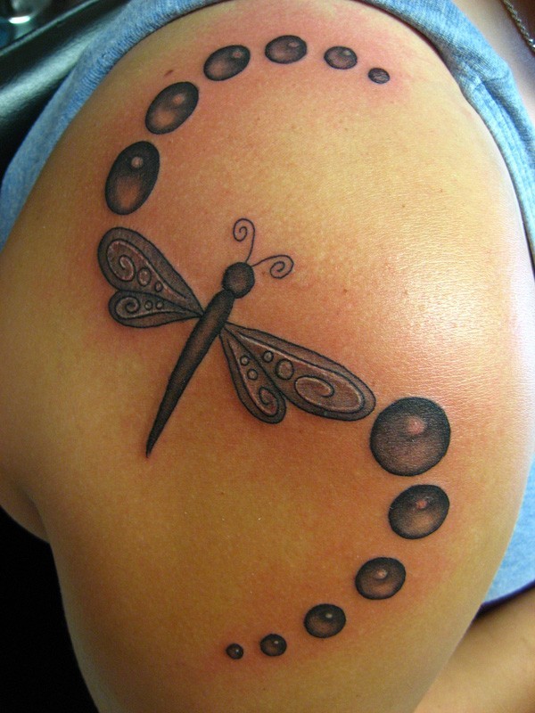 肩部黑色的蜻蜓纹身图案