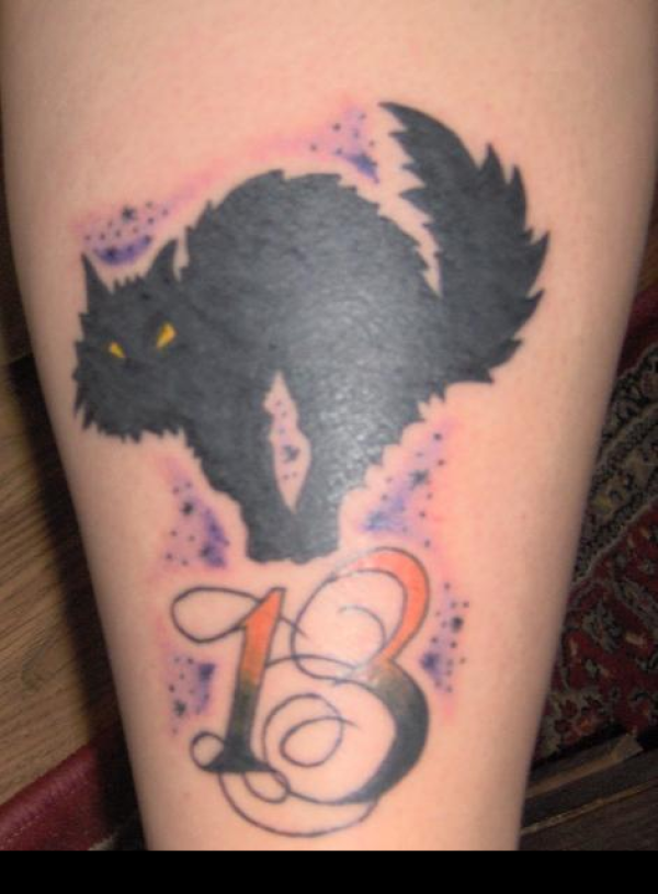 花体数字和黑猫纹身图案