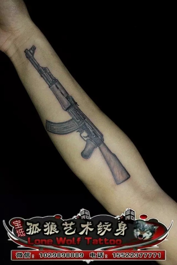 小臂 AK-47 手枪 纹身 天津 宝坻 孤狼纹身工作室 微信{QQ}:1029898889 电话:15522377771.