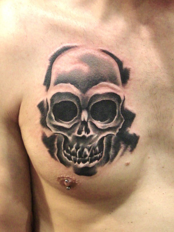 胸部黑色骷髅纹身图案