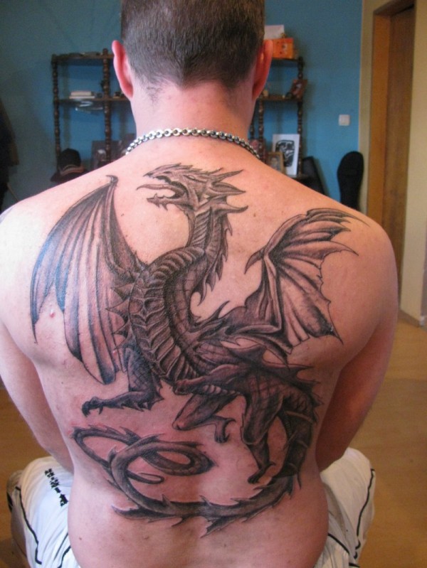 龙纹身手稿_一组老传统黑灰龙手稿纹身图案