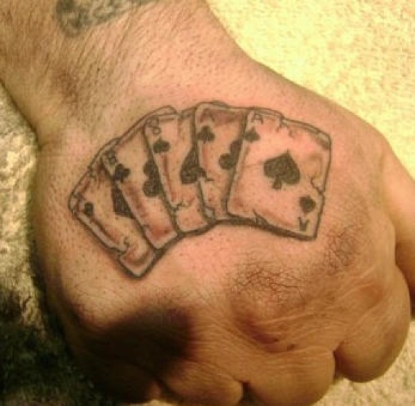 黑色扑克牌手背纹身图案