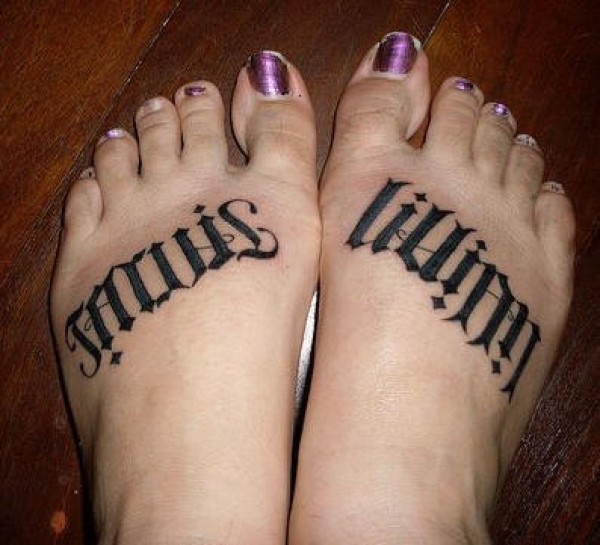 脚背黑色风格花体字母纹身图案