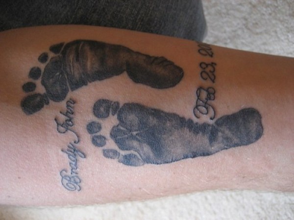 黑色小孩脚印和字母数字纹身图案