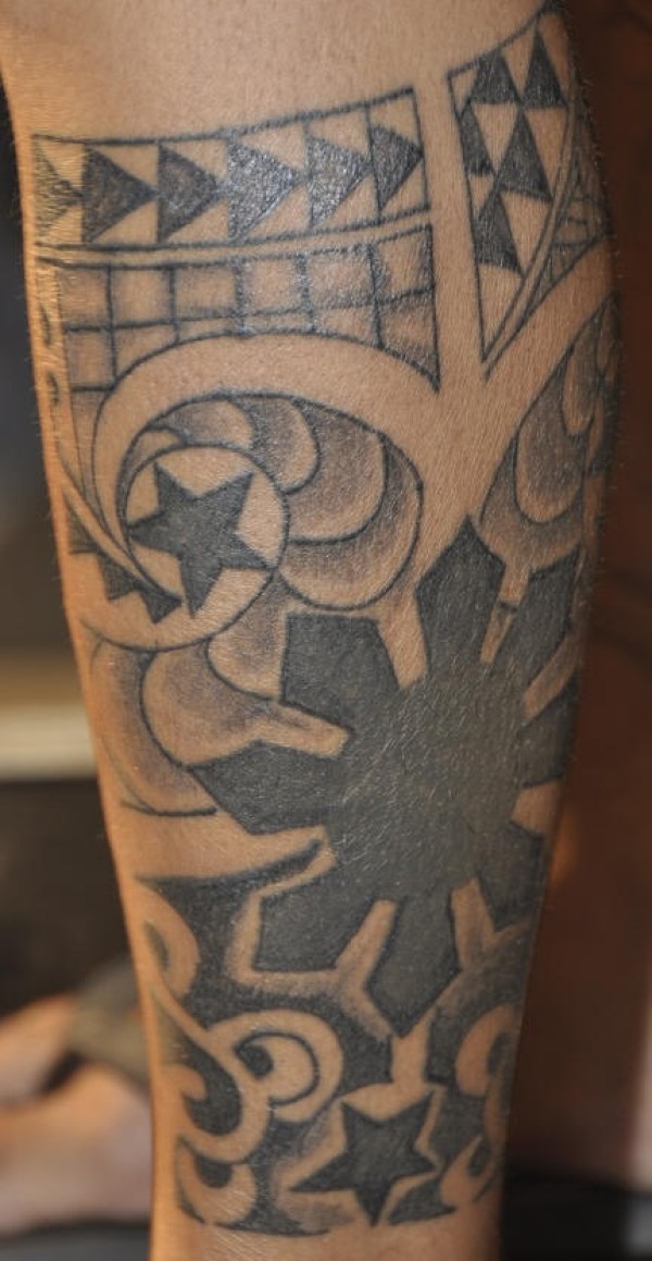 腿部几何星星图腾黑色纹身图案