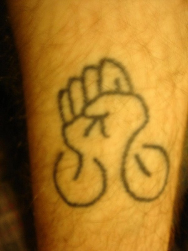 腿部黑色线条拳头纹身图案