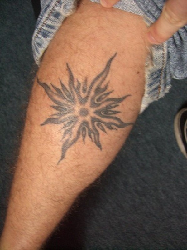 腿部圆圈太阳图腾纹身图案