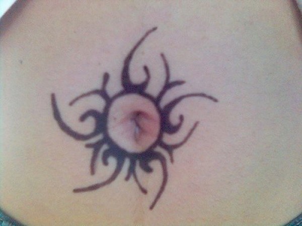 腹部简约黑色太阳图腾纹身图案