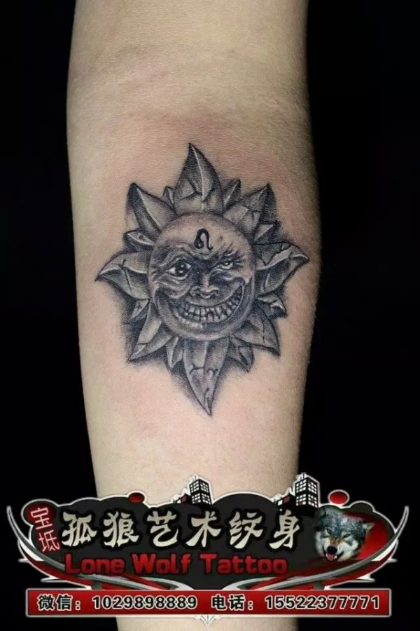美女 小臂 石刻 太阳 纹身 天津 宝坻 孤狼纹身 工作室 微信{QQ}:1029898889 电话:15522377771.