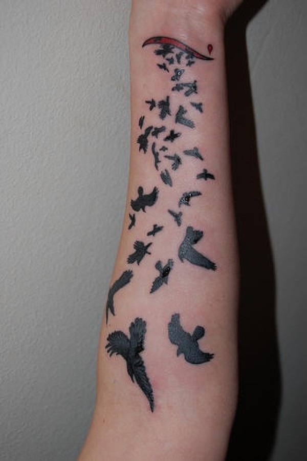 黑色飞鸟手臂纹身图案