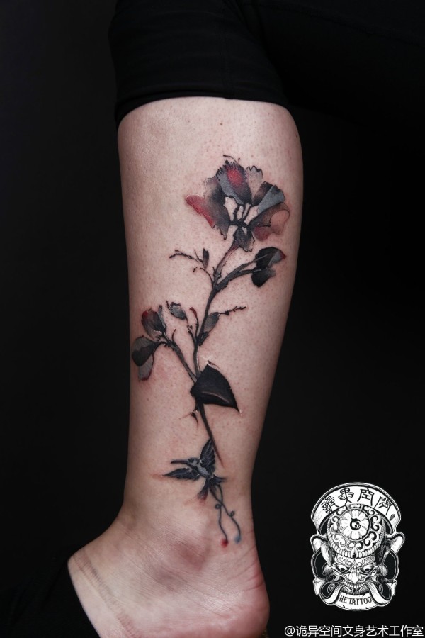 清新花朵腿部纹身图案图片_植物纹身图案大全_纹身图吧