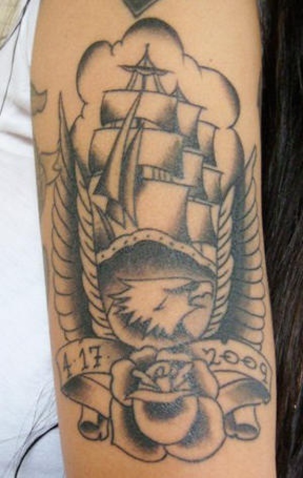 老鹰和帆船欧美纹身图案