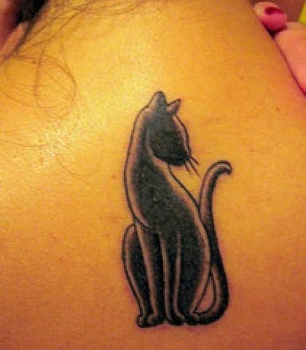 优雅的黑色猫纹身图案