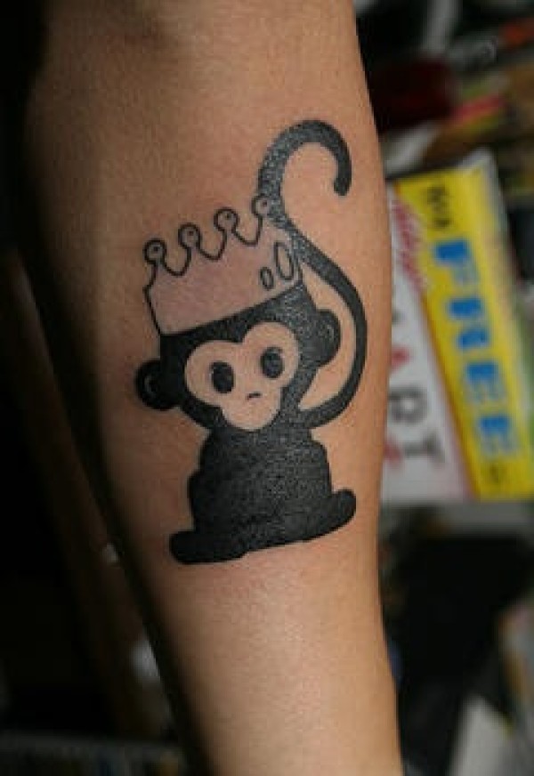 手臂皇冠和黑色猴子纹身图案