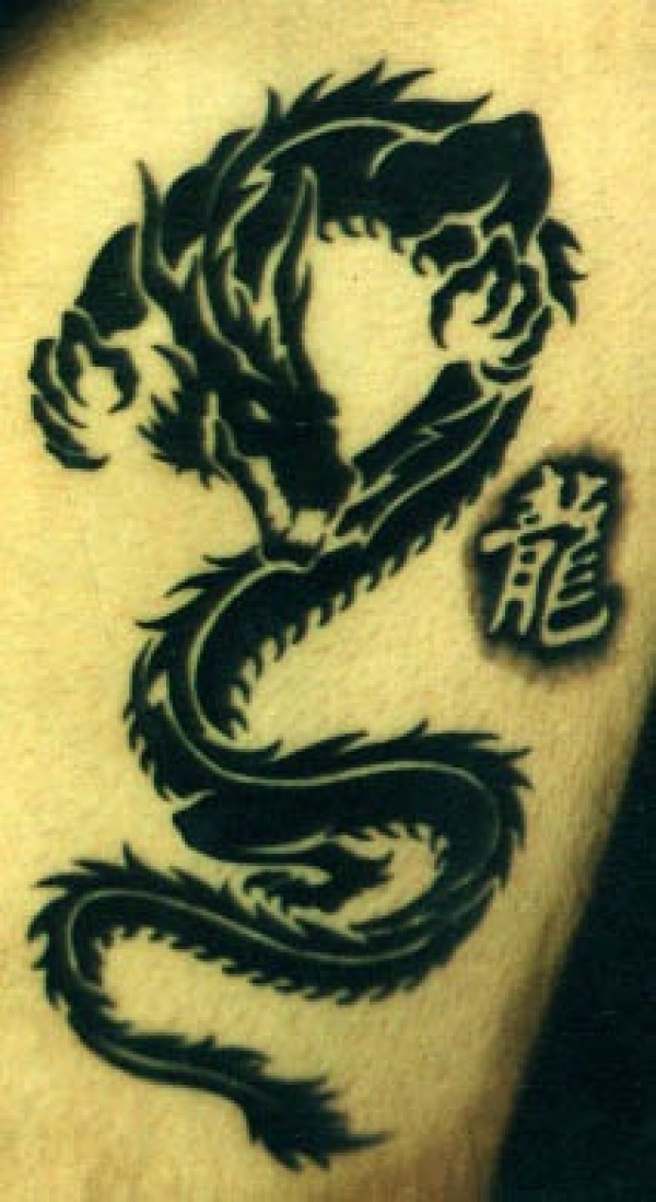 龙纹身手稿_一组老传统黑灰龙手稿纹身图案