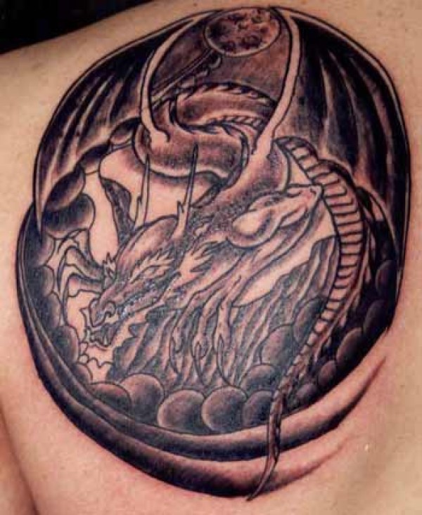 龙纹身手稿_一组老传统黑灰龙手稿纹身图案