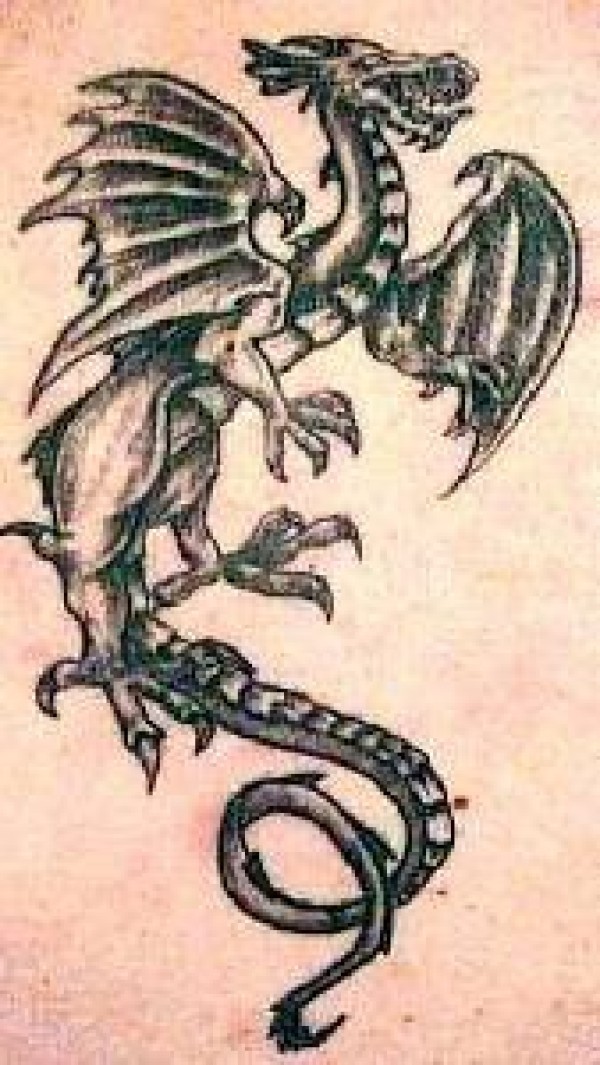 龙纹身手稿_一组老传统黑灰龙手稿纹身图案