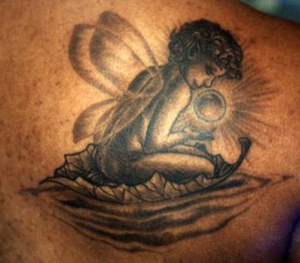 背部精灵和魔球黑色纹身图案
