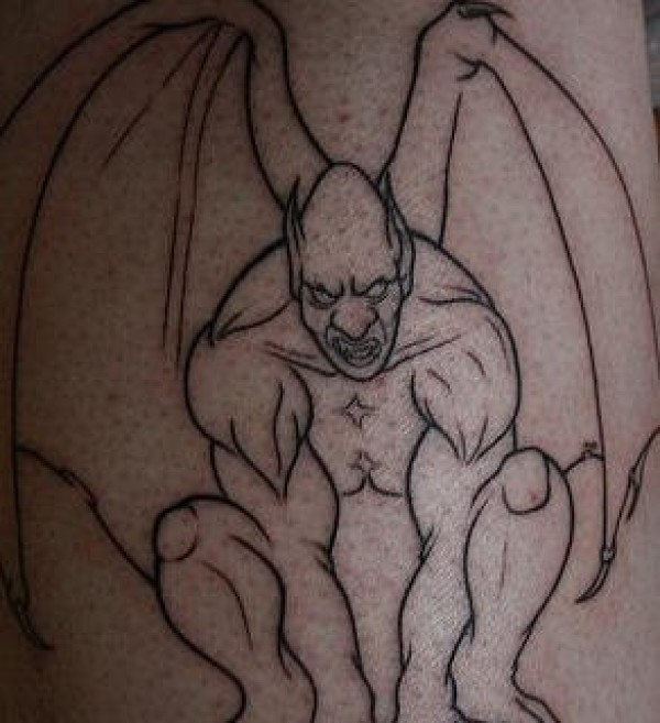黑色的线条石像鬼纹身图案