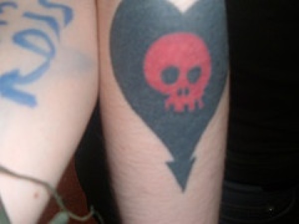 黑色的心形与红色骷髅纹身图案
