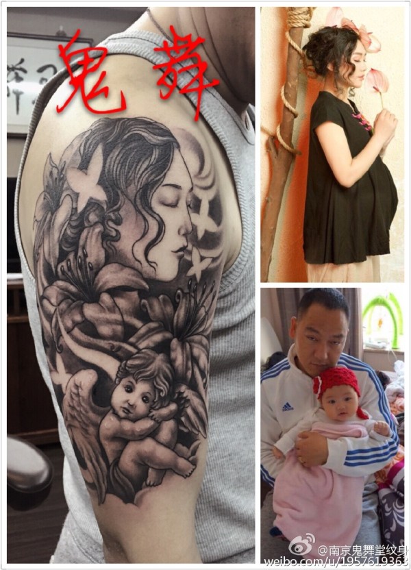 满爱意的纹身,客人想做老婆和孩子的脸,并希望不要太写实